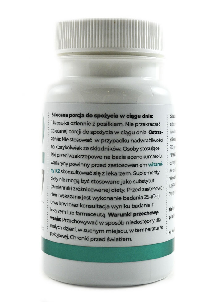 Osoby stosujące leki przeciwzakrzepowe na bazie acenokumarolu, warfaryny powinny przed zastosowaniem witaminy K2 skonsultować się z lekarzem.