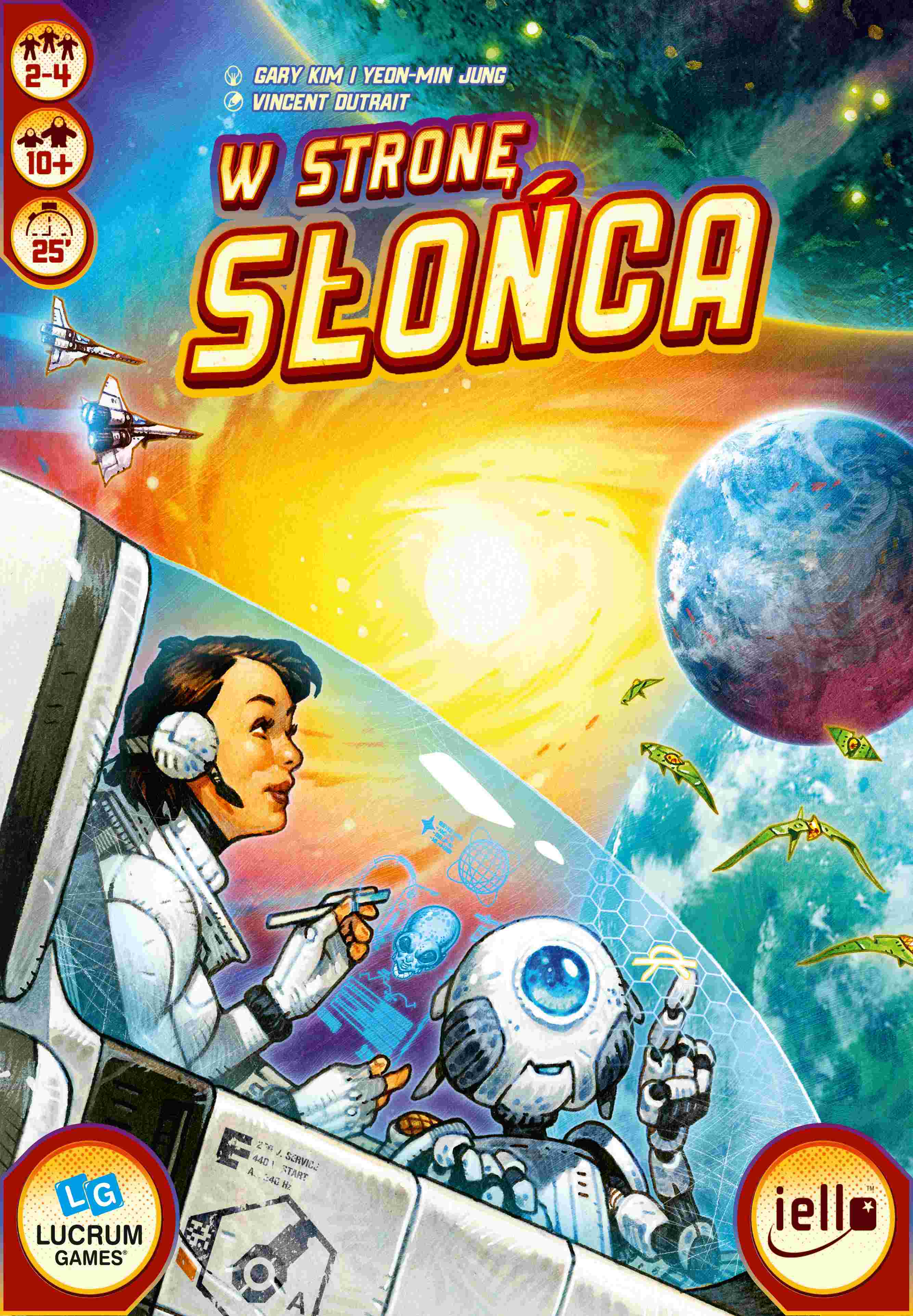 Podczas rozgrywki w grę W stronę słońca na przestrzeni trzech rund będziecie starać się uzyskać jak największą liczbę punktów. W swojej turze każde z Was, w wyniku decyzji własnej bądź posunięć rywali , otrzyma kształt do narysowania na swoim arkuszu. rysując, będziecie decydować, czy lepiej pokonać wrogich kosmitów, zdobyć usprawnienia, sięgnąć po niezwykle cenne zasoby, czy może badać czarne dziury. Spróbujecie też dotrzeć do najodleglejszych krańców galaktyki. To z was, które podoła wyzwaniu i najlepiej wykona powierzone zadania, zwycięży.