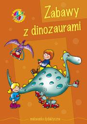Zabawy z dinozaurami to malowanka, w której dinozaury razem z dziećmi pływają w morzu, budują zamki z piasku, grają w koszykówkę...