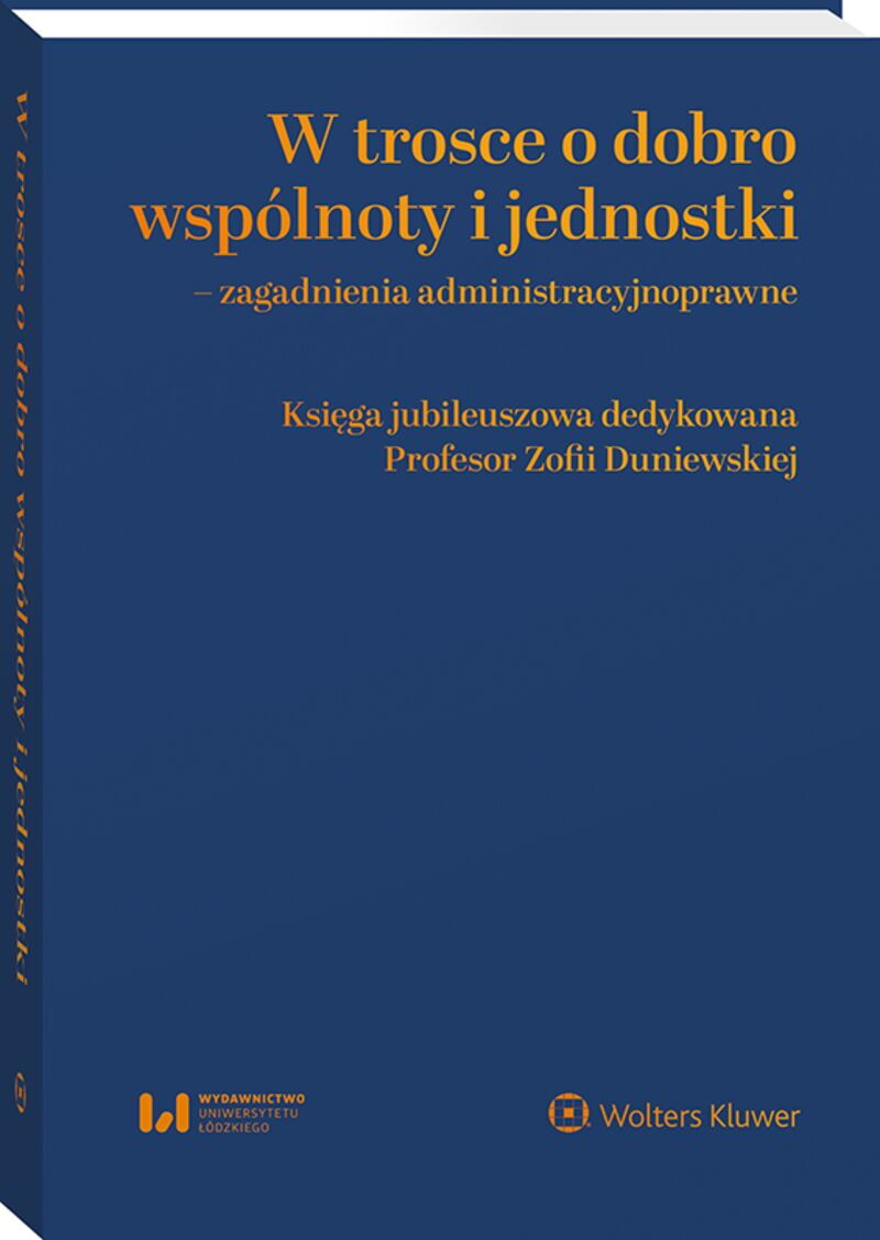 Księga powstała z okazji jubileuszu 70-lecia Profesor Zofii Duniewskiej, zbiegającego się z jej 45-letnią pracą w Katedrze Prawa Administracyjnego i Nauki Administracji Wydziału Prawa i Administracji Uniwersytetu Łódzkiego. Jubilatka należy do grona znanych polskich administratywistów. Jej bogaty dorobek naukowy obejmuje ponad 150 opracowań, które oprócz walorów naukowych znamionuje także duża doniosłość praktyczna. Dzieło zawiera ponad 30 artykułów poświęconych zagadnieniom administracyjnoprawnym ukierunkowanym na potrzeby jednostek i ich wspólnot, czyli tematom bliskim Jubilatce. Tytuł księgi - W trosce o dobro wspólnoty i jednostki - odzwierciedla charakter i zainteresowania badawcze Pani Profesor, która od lat koncentruje się na pozycji administracyjnoprawnej podmiotów administrowanych, przy czym centralne miejsce przypisuje człowiekowi oraz tworzonym przez ludzi społecznościom. Pełna oddania troska o ich dobrostan, wiara w humanistyczną misję prawa administracyjnego i proobywatelskie podejście do podejmowanych problemów są widoczne we wszystkich obszarach Jej twórczości zarówno badawczo-naukowej, jak i dydaktycznej. W podziękowaniu autorzy pragną wyrazić uznanie dla dokonań Pani Profesor oraz wdzięczność za możliwość bycia Jej przyjaciółmi i współpracownikami.