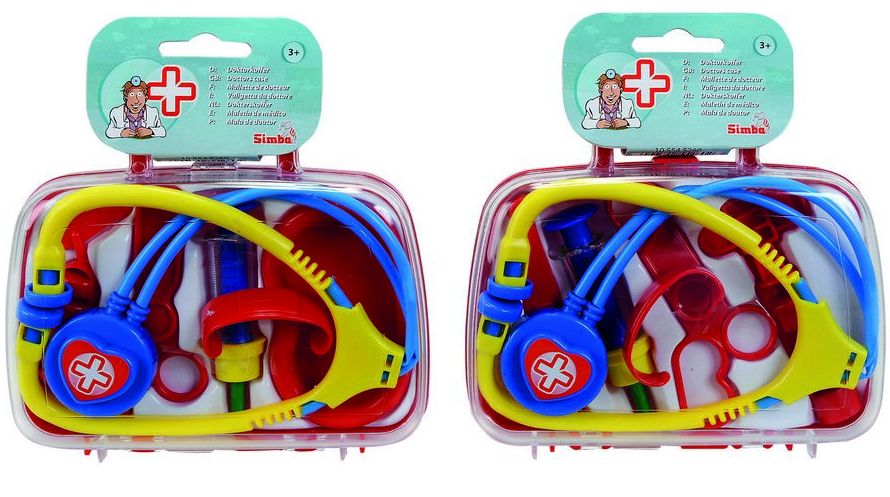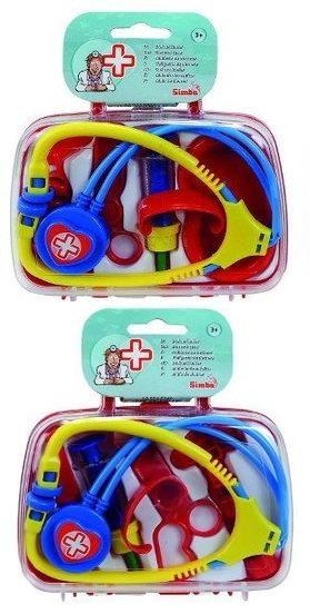 Akcesoria lekarskie w plastikowej walizce, wygodnej do przechowywania i przenoszenia zestawu.