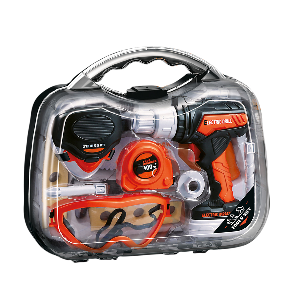 Zestaw zapakowany w walizkę, składa się z 16 elementów. W jego skład wchodzi wiertarko-wkrętarka na baterie, wymienne końcówki, piła, miarka, maseczka ochronna na usta i nos, okulary. Wiertarko-wkrętarka wymaga baterii - 2xAA (niedołączone)