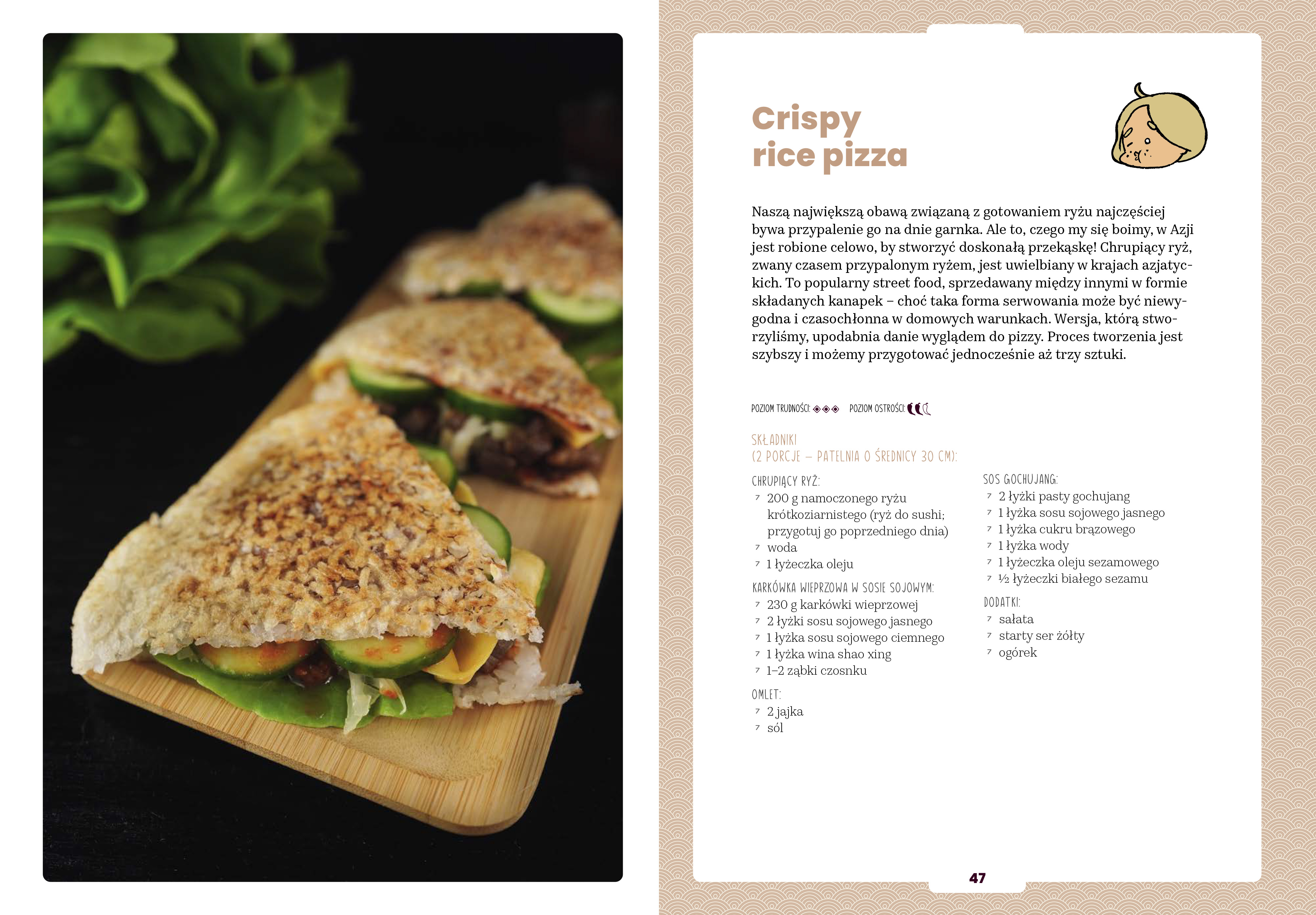 Chcesz przygotować doskonały egg fried rice, przyrządzić kurczaka w sosie słodko-kwaśnym jak z „Chińczyka” czy zjeść tradycyjne japońskie mochi? Nic prostszego! Zanurz się z nami w kuchni azjatyckiej i poznaj nieograniczone możliwości, jakie daje ryż! Nauczymy cię wykorzystywać go na dziesiątki sposobów – na śniadania i kolacje, na ostro i na słodko, na zimno albo na gorąco. W sushi, kolorowych bowlach albo koreańskim bulgogi – niech przestanie być nudnym dodatkiem, a stanie się głównym bohaterem! Zatem już dziś wyrusz z nami w kulinarną podróż – wypłucz ryż i do dzieła! * Beata i Tetsu to miłośnicy azjatyckich smaków i kuchni z Dalekiego Wschodu. Na swoich profilach w mediach społecznościowych dzielą się przepisami i kulinarnymi trikami na pyszne dania inspirowane między innymi kuchnią japońską, koreańską, wietnamską czy chińską. Ich filmy i zdjęcia pokazują krok po kroku, jak przygotować aromatyczne potrawy w domowym zaciszu. Tetsu to mieszanka dwóch kultur – jest w połowie Japończykiem, w połowie Polakiem. Urodził się w malowniczym Sanjo, w prefekturze Niigata w Japonii, a edukację zdobywał w Polsce. Razem z Beatą od lat tworzą zgrany zespół i dzielą się z odbiorcami swoją pasją do gotowania, zachęcając do eksperymentowania w kuchni i odkrywania nowych smaków.
