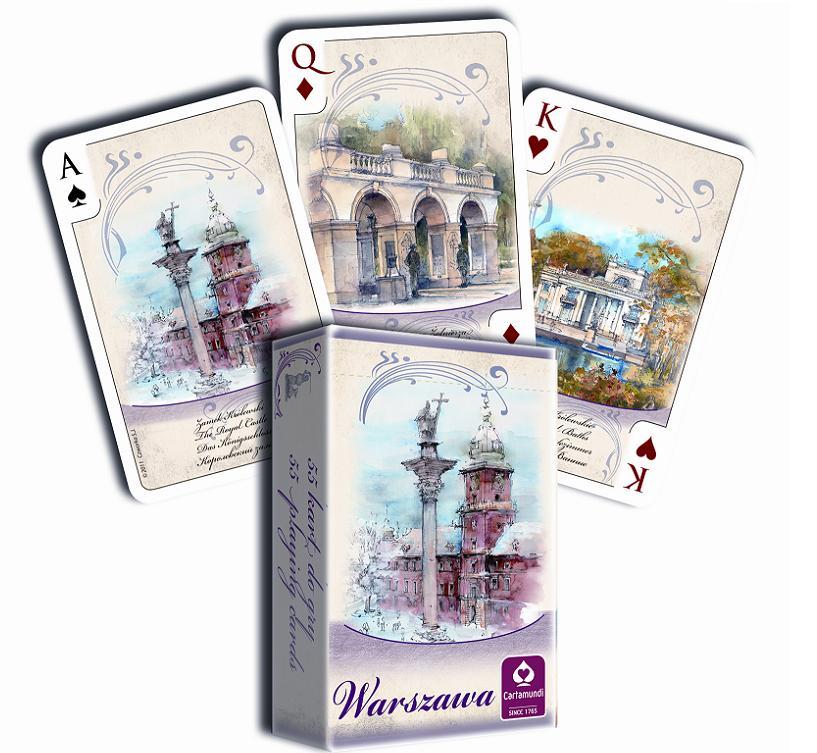 Talia kart do Brydża. Na awersach widnieją najpiękniejsze zabytki Warszawy malowane akwarelą, stanowią uroczy upominek.