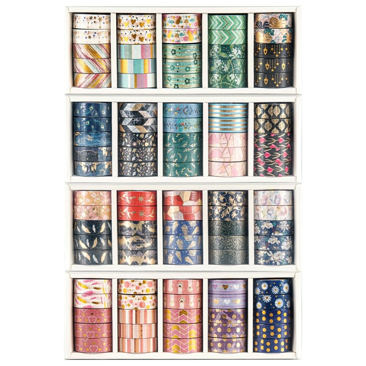Taśma klejąca wąska, dekoracyjna, ze złotymi metalizowanymi elementami. Można ją wykorzystać na 100 sposobów. Ułatwia pakowanie prezentów, tworzenie kartek okolicznościowych, ozdabianie pudełek, a przede wszystkim jest niezastąpiona w tworzeniu własnych, oryginalnych ozdób. Można ją wielokrotnie odklejać i przyklejać. Każde opakowanie zawiera ten sam mix wzorów w 4 wariantach.