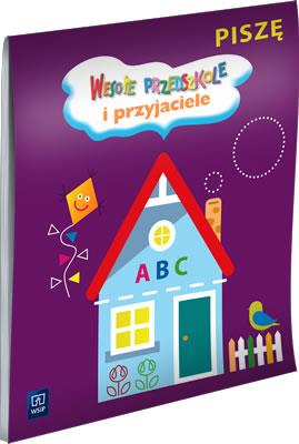 Zeszyt uzupełniający do pakietu Wesołe przedszkole i przyjaciele, zawierający ćwiczenia przygotowujące do nauki pisania: projektowanie szlaczków, samodzielne pisanie liter i cyfr, kreślenie różnorodnych linii, pisanie liter po śladzie w poszerzonej liniaturze.