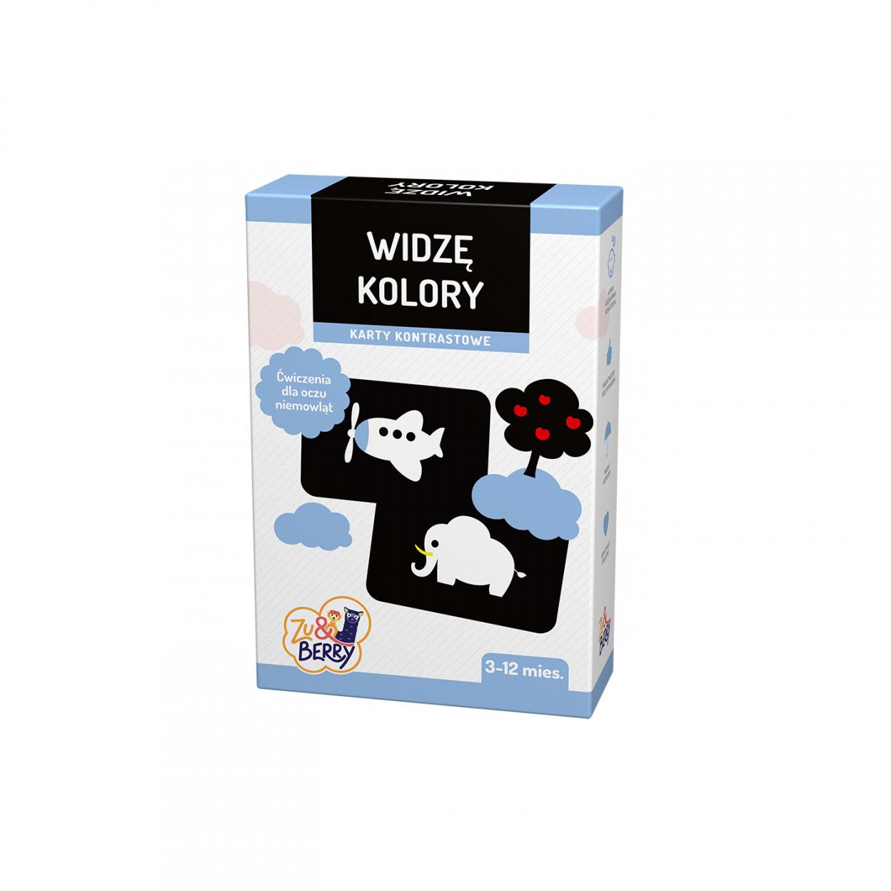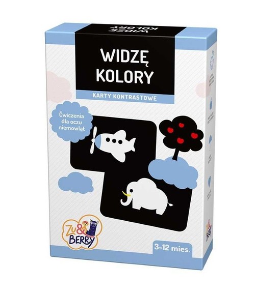 Karty Widzę kolory wprowadzają dziecko w świat kolorów i nowych doznań sensorycznych. Pomagają również dorosłemu budować wieź emocjonalna z dzieckiem i uczestniczyć w jego rozwoju poznawczym. Ćwiczą zdolności manualne i pozwalają na dostosowanie ilości informacji zależnie od potrzeb – tego nie zapewnia żadna książeczka z obrazkami. Polecane przez psychologów już od trzeciego miesiąca zżycia dziecka. Zostały przygotowane z myślą o maluchach, które właśnie zaczynają przejawiać zamiłowanie do jaskrawych, żywych barw. Ich uwagę przyciąga głównie czerwony i żółty - kolory stymulujące układ nerwowy, ale niebieski i zielony również nie pozostają obojętne. Dziecko wciąż widzi jak przez mgłę, dlatego tak ważne jest wyraźne zaznaczanie konturów. Obrazki dostosowane są do możliwości percepcyjnych maluszka – proste motywy pozwalają lepiej zapamiętywać kształty i ćwiczyć zdolność skupiania uwagi. PIERWSZE KARTY DLA TWOJEGO DZIECKA Rozwój poprzez zabawę Budowanie więzi Poznawanie świata poprzez zmysły i dzięki motoryce.