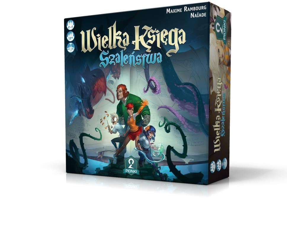 Wielka Księga Szaleństwa stoi zakurzona na pulpicie. Otwórz ją, jeśli masz dość odwagi! W tej grze wcielasz się w rolę uczniów szkoły czarodziejskiej, którzy nieopatrznie otworzyli prastary wolumin i uwolnili kryjące się w nim potwory! Zamknijcie ponownie księgę, strona po stronie, wiążąc na powrót wszystkie potwory. Aby wygrać musicie współpracować, uczyć się nowych zaklęć, poszerzać swoje umiejętności i nade wszystko nie dać się porwać szaleństwu. Wielka Księga Szaleństwa to gra oparta o mechanizm budowania talii. To emocjonująca przygoda zarówno dla początkujących jak i bardziej zaawansowanych graczy.