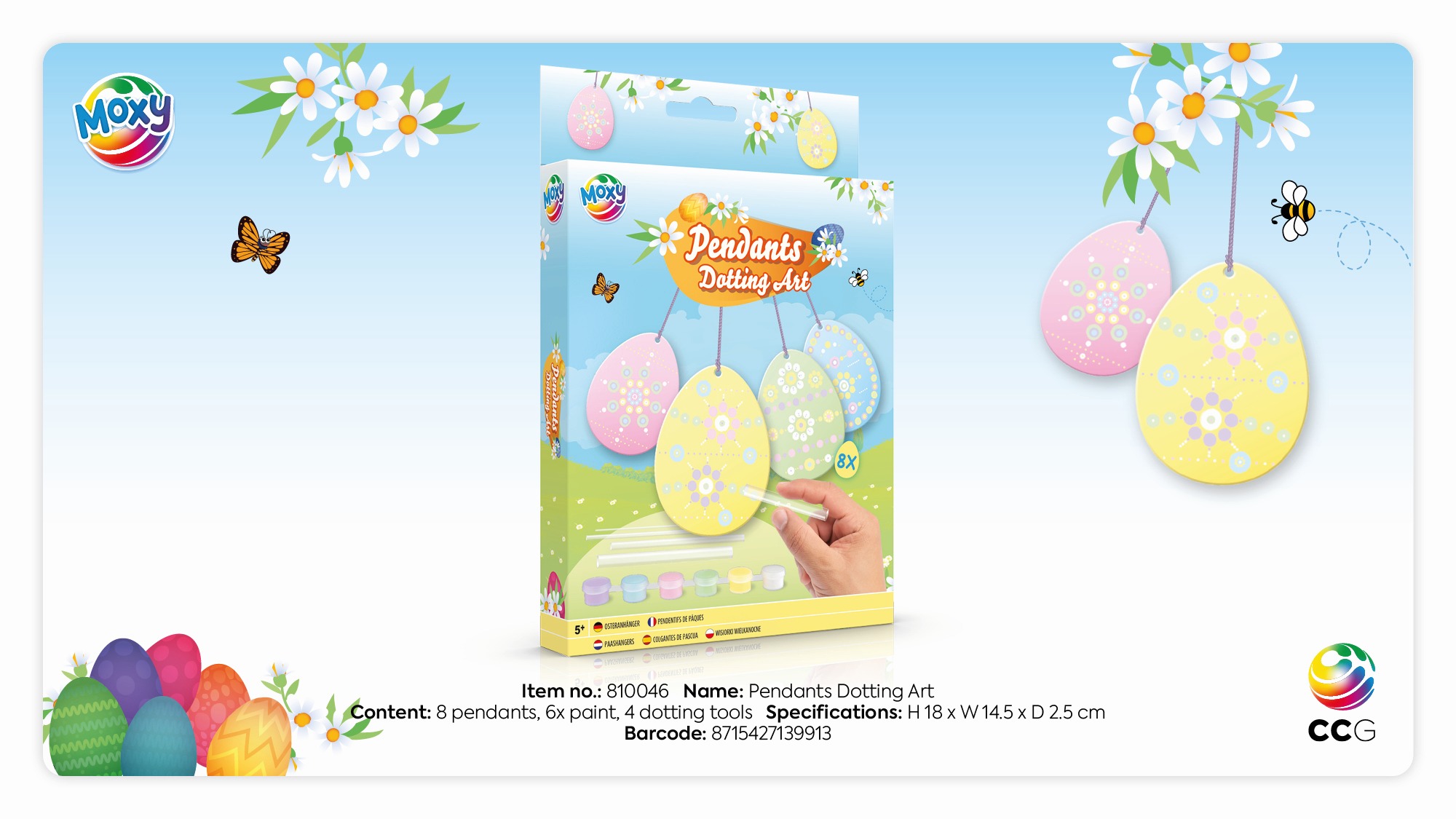 Wielkanocne zawieszki - kropkowanie farbą, 8 zawieszek, 6 farb