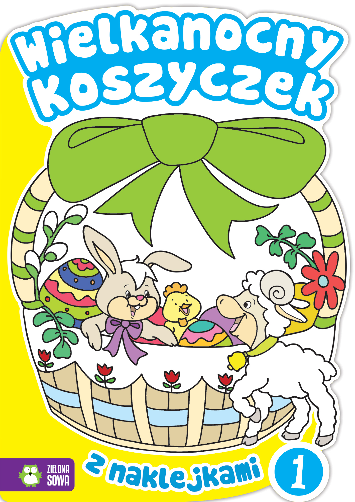 Pokoloruj pisanki, kurczaczki i baranki. Udekoruj naklejkami koszyczki wielkanocne.