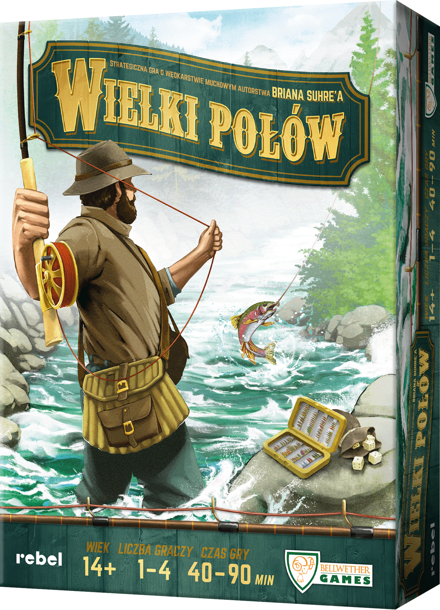 Wielki połów to klimatyczna gra z popularną mechaniką push your luck polegającą na dobieraniu kości i korzystaniu z akcji na planszy kołowrotka. Choć zasady gry są proste (w swojej turze gracz wybiera kość i wykonuje 1 akcję), to zwycięstwo wymaga ułożenia przemyślanej strategii i korzystania z dodatkowych możliwości. Rozważnie planuj swoje tury i łącz akcje w niespodziewane kombinacje, a wysuniesz się na prowadzenie! Czy jesteś gotów wykazać się wędkarską finezją i zdobyć najbardziej ambitne osiągnięcia?