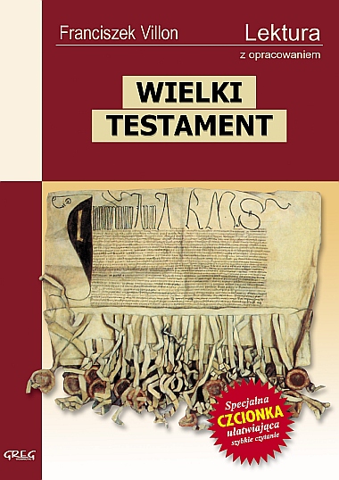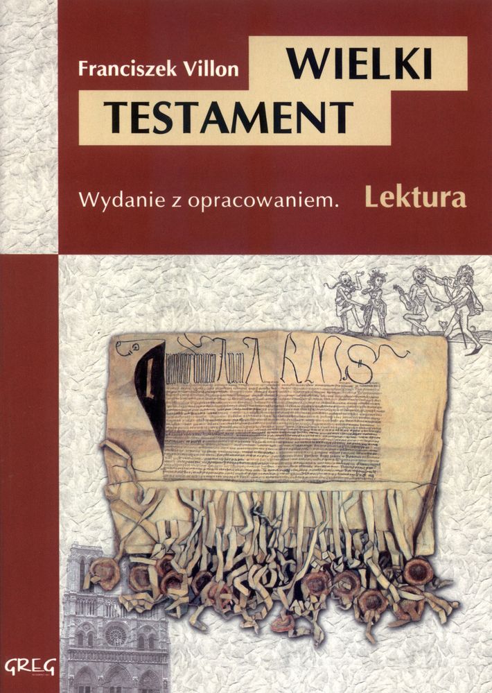 Wielki testament (fr. Le grand testament) - utwór Franciszka Villona. Ukazuje uczucia człowieka żyjacego u schyłku średniowiecza. Powstał po wyjściu poety z więzienia paryskiego. Jest to pożegnanie ze światem i swoisty rachunek sumienia. Pojawia się literacki bohater, którego nie było do tej pory w literaturze. Średniowiecze nie znało bohatera przeciętnego, niczym się niewyróżniającego.W utworze odnaleźć można Topos ubi sunt w powtarzającym się refrenie ""Ach, gdzie są niegdysieysze śniegi"". Jest to sentencja, maksyma Villona. Wyraża tęsknotę za minionym czasem. W balladzie O paniach minionego czasu, która jest częścią Wielkiego testamentu, zawarta jest idea przemijania oraz niemożności powrotu - memento mori (""pamiętaj o śmierci""). Są także nawiązania do danse macabre, czyli tańca śmierci. Śmierć jest wszechwładna, wszechobecna, niespodziewana, okrutna. Przeważają naturalistyczne oraz turpistyczne przedstawienia człowieka i śmierci.