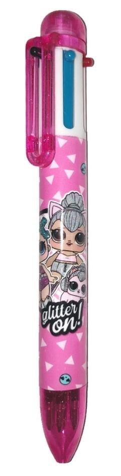 L.O.L Surprise, Różnokolorowy Długopis. Różnokolorowy długopis. Zawiera 6 kolorów: niebieski, czarny, czerwony, fioletowy, zielony i pomarańczowy. Bardzo wygodny w trzymaniu. Pięknie wykonany, ozdobiony grafikami Dziewczynki L.O.L. Kolorystyka: delikatne odcienie cukierkowego różu. Niezbędny dodatek do każdego piórnika.