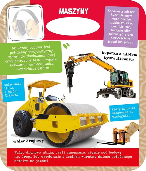 Jaka jest największa maszyna na budowie? Czy traktor pracuje tylko na polu? Jakie są typy maszyn budowlanych?... na te i wiele innych pytań znajdziesz odpowiedzi w naszej książeczce. Czytaj ciekawostki o maszynach i koloruj je, uzupełniaj puste pola naklejkami.