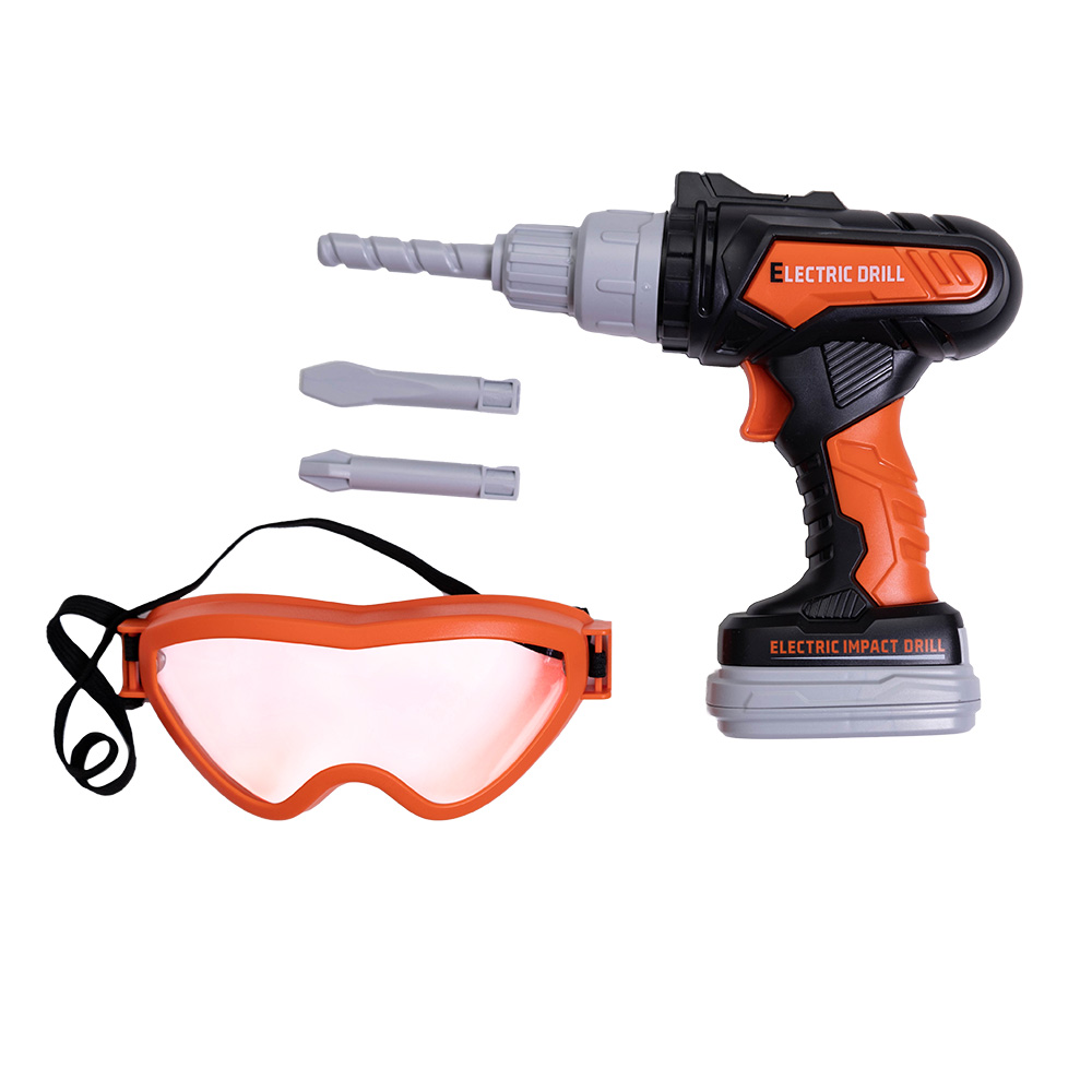 Wiertarko-wkrętarka na baterie z różnymi końcówkami oraz okularami ochronnymi. Wymagane baterie - 2xAA (niedołączone).