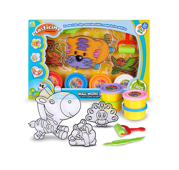 W zestawie: 4 kolory masy plastycznej, 3 formy do witrażyków, nożyk, wałek. 2 wzory, towar wysyłany losowo.