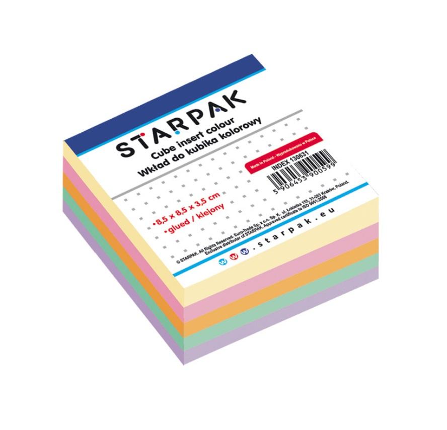 Blok kolorowych karteczek do notowania, pasujący do pojemników metalowych i plastikowych Starpak. Wymiary 85 x 85 mm.