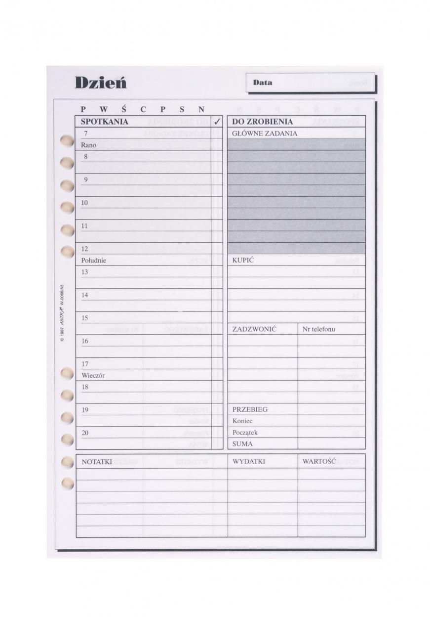 Wkład do organizera A5 Wymiary: 210x144 mm Kolor kartek: biały Ilość kartek: 20 szt.