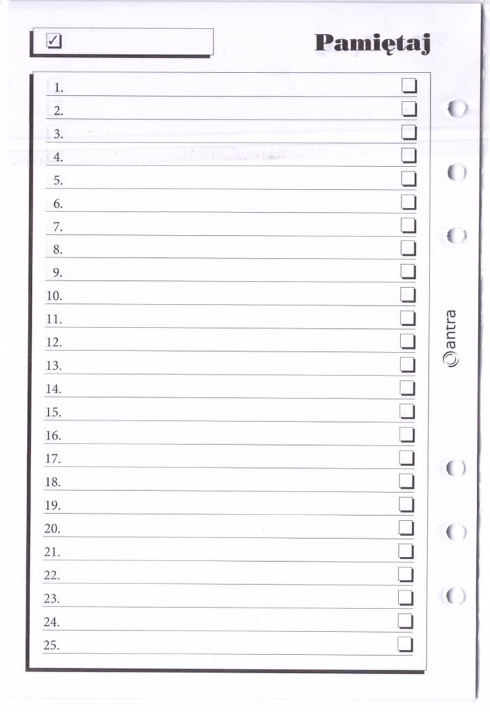 Wkład do organizera: MEMOFIX/A5/PAMIĘTAJ Wymiary: 210x144 mm Kolor kartek: ecru Ilość kartek: 20 szt Ilość dziurek: 6 szt