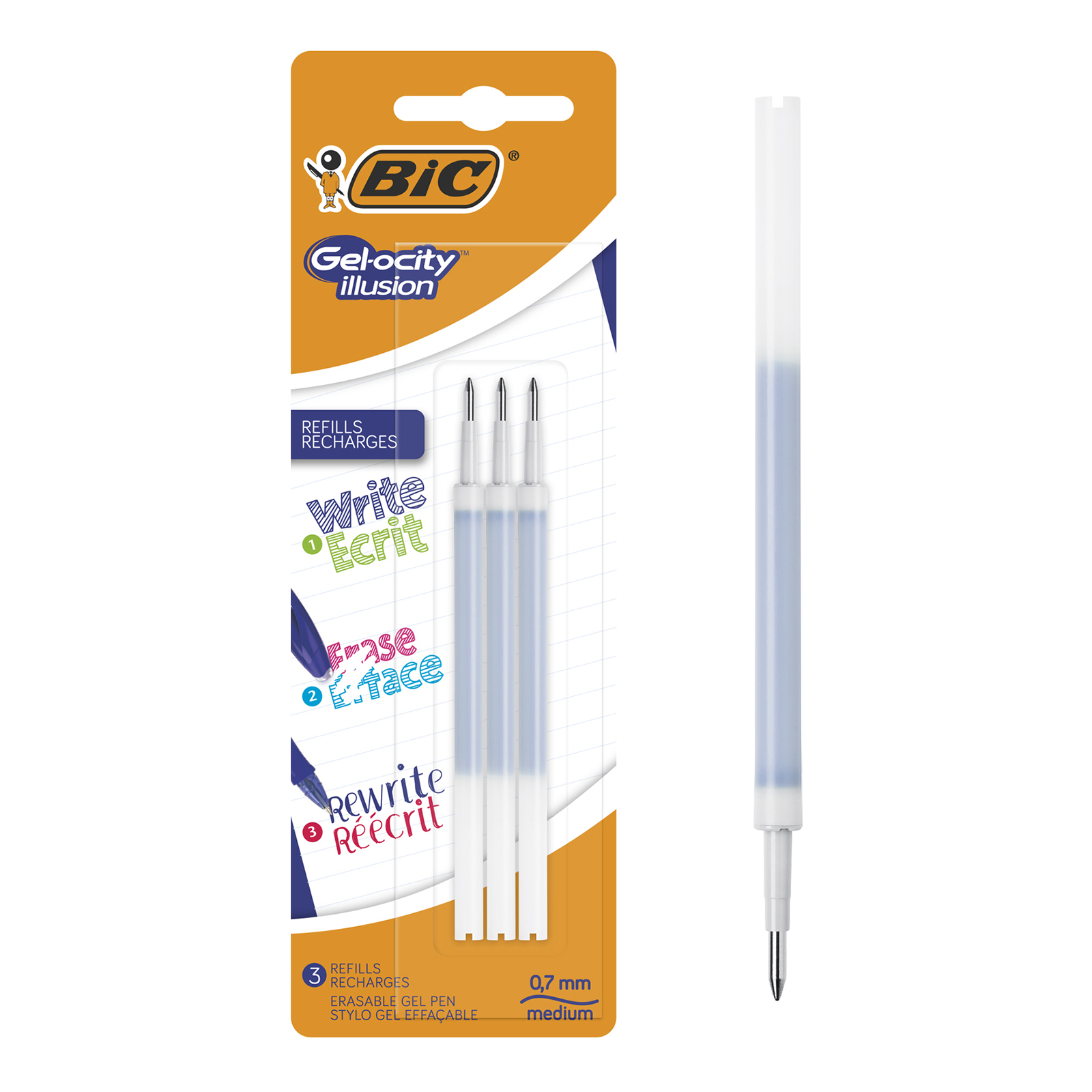 Wkład do długopisów zmazywalnych Gelocity Illusion - kolor niebieski, średnica końcówki 0,7mm, zapewnia szerokość linii pisania 0,3 mm. 3 sztuki na blistrze.
