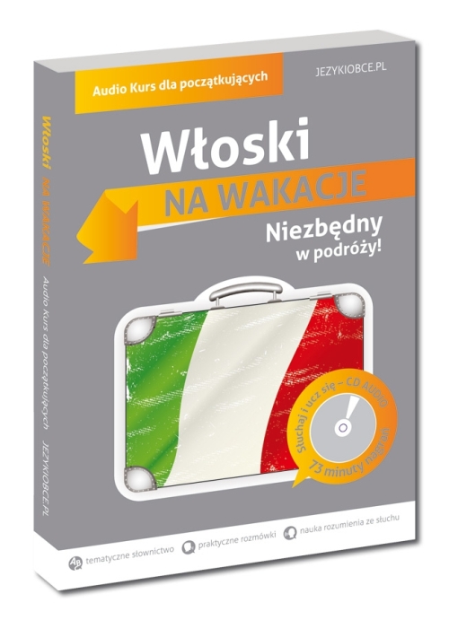 Włoski NA WAKACJE to kurs przygotowany z myślą o osobach, które wyjeżdżają za granicę w celach turystycznych. Zapewnia skuteczną naukę mówienia i rozumienia ze słuchu.