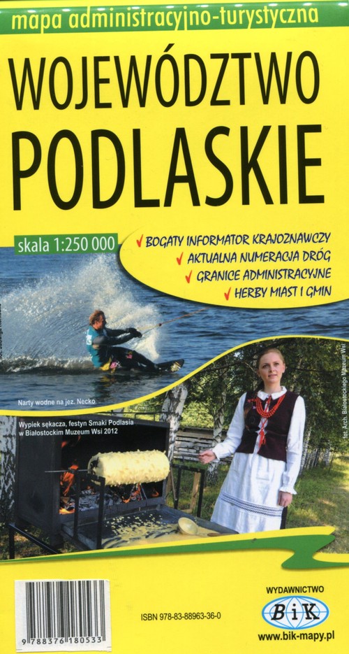 Na odwrocie opisy uwzględniające walory krajoznawczo-turystyczne: województwa podlaskiego, powiatów, ważniejszych miejscowości, oraz parków narodowych i krajobrazowych.