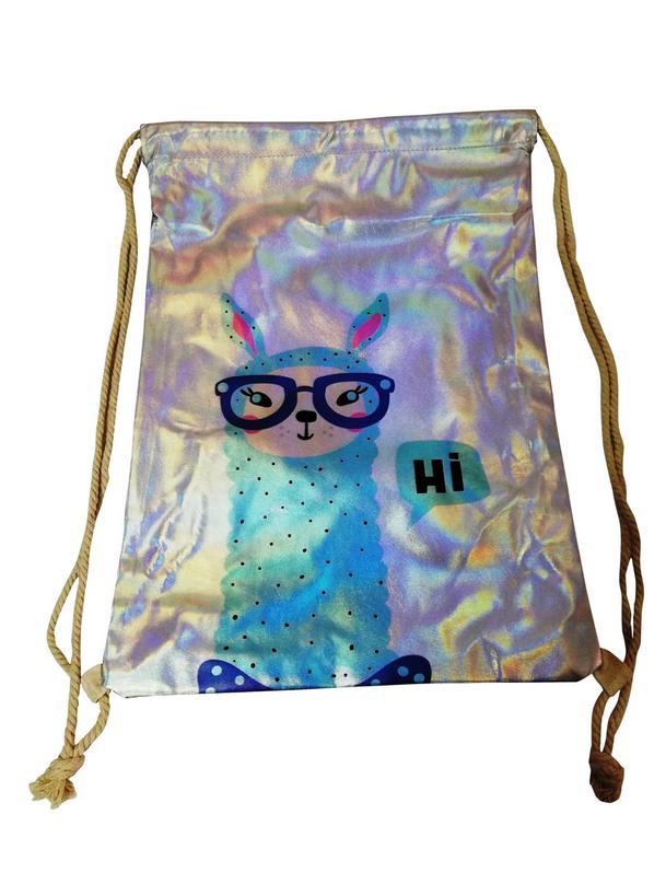 Worek holograficzny z aplikacją w Lamy w kolorze niebieskim.