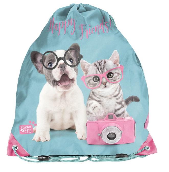 Worek na buty Studio Pets błękitno-różowy. Worek zamykany jest ściągaczem, dzięki czemu dostęp do zawartości jest łatwy i szybki. Podwójny ściągacz umożliwia noszenie worka na plecach lub na ramieniu. Jeśli Twoje dziecko jest fanem czarujących, słodkich kotków i piesków, to worek na buty Paso sprawi mu ogromną radość.