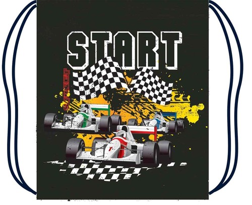 Materiałowy worek na kapcie ściągany sznurkiem.