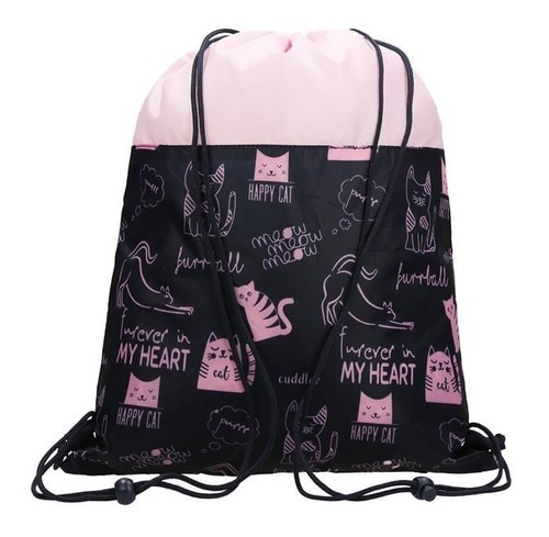 posiada podwójne boczne sznurki, które umożliwiają noszenie worka w rękach, na ramieniu oraz na plecach