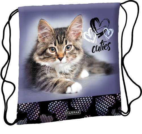Praktyczny i wygodny worek nie tylko na buty. Ozdobiony wizerunkiem Kota. Zapoznaj się również z innymi produktami Starpak z serii Cuties! Komora zaopatrzona w ?wywietrzniki?. System sznurków umożliwia wygodne noszenie worka w dłoni, na ramieniu, a także jako plecak. Wytrzymały i odporny na zabrudzenia materiał. Wykonany z trwałego materiału. Worek jest wyrobem tekstylnym. Przeznaczony dla dzieci w wieku: 3+. Wymiary produktu(wys.x szer.) [cm] 38,5x33.