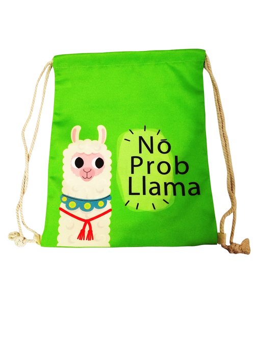 Worek-plecak wykonany z bardzo mocnego materiału o fakturze płótna, obustronnie zadrukowany. Można go prać w pralce. Worek ma ściągane szelki z grubego bawełnianego sznurka.