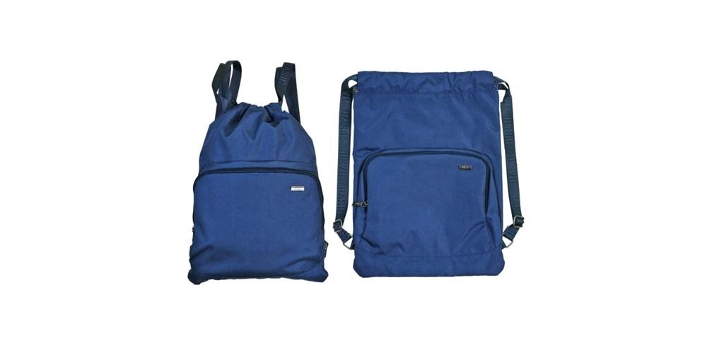 WORKO-PLECAK - GRANATOWY/BASIC, wymiary 35x48,5cm, wewnątrz dodatkowa kieszonka na zamek, regulowane szelki z wyszytą aplikacją, na plecach dodatkowa kieszeń zamykana na zamek.