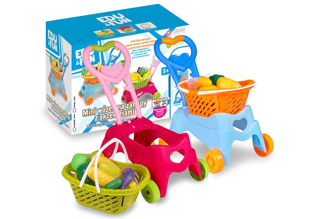 Wózek na zakupy mini z akcesoriami, z wyjmowanym koszykiem, 2 wzory