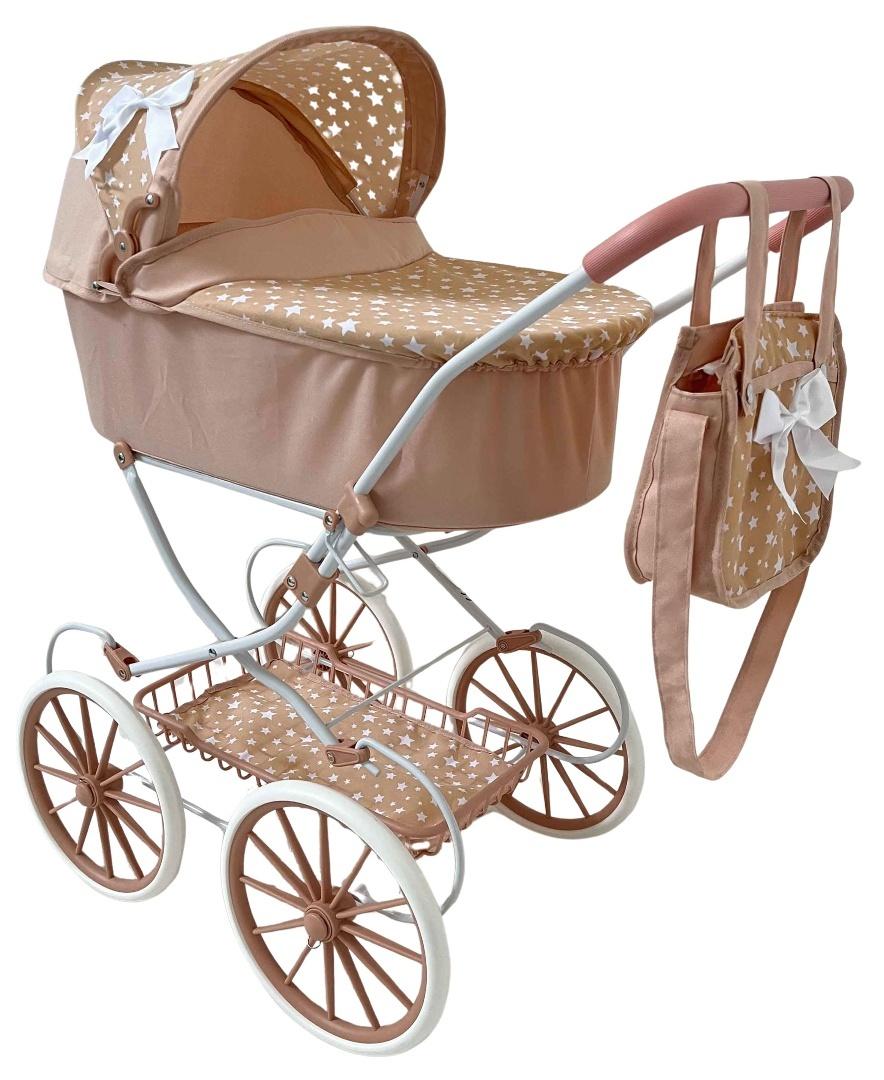 Wymiary wózka: wysokość 89cm, długość 69,5cm, wysokość rączki 80cm, średnica kół 25cm.