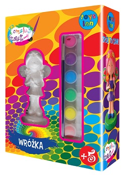 Zawiera figurkę wróżki, farby w 6 kolorach, pędzelek.