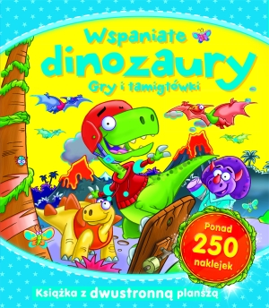 Poznaj niezwykłe dinozaury, które uwielbiają sporty ekstremalne, wyzwania i przygody. W książce znajdziesz ponad 250 nalepek wielokrotnego użytku, składaną dwustronną planszę, na której można je przyklejać, oraz mnóstwo ciekawych zagadek, gier i wypychanek. Godziny wspaniałej zabawy gwarantowane. W serii książeczek z dwustronną planszą znalazły się tytuły: Wspaniałe dinozaury, Wyjątkowe maszyny, Piękne księżniczki, Fantastyczne wróżki.