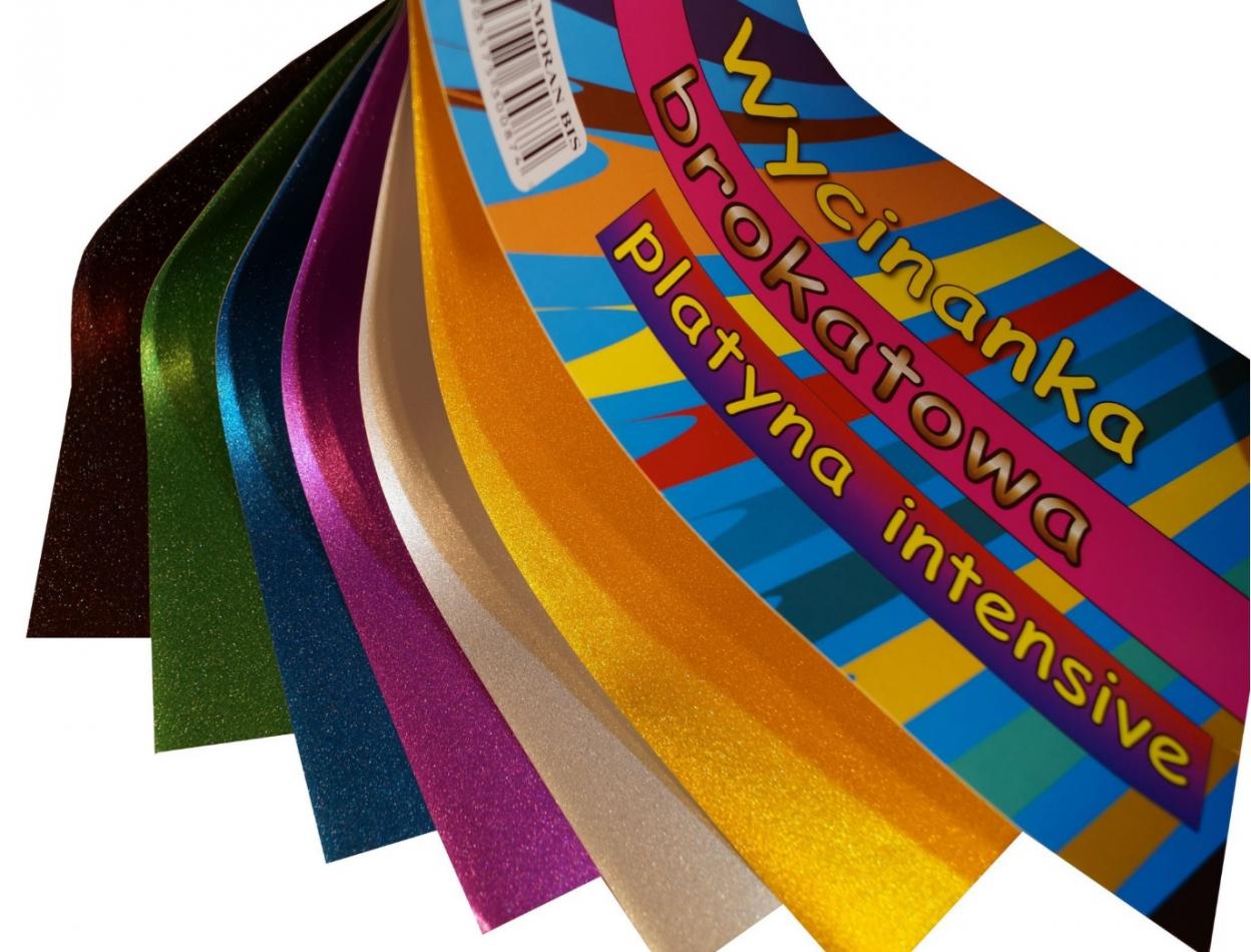Zeszyt papierów brokatowych platyna intensive w formacie A-4, Zawiera 6 różnokolorowych kartek z brokatem i metalicznym połyskiem platyny. Wycinanka.