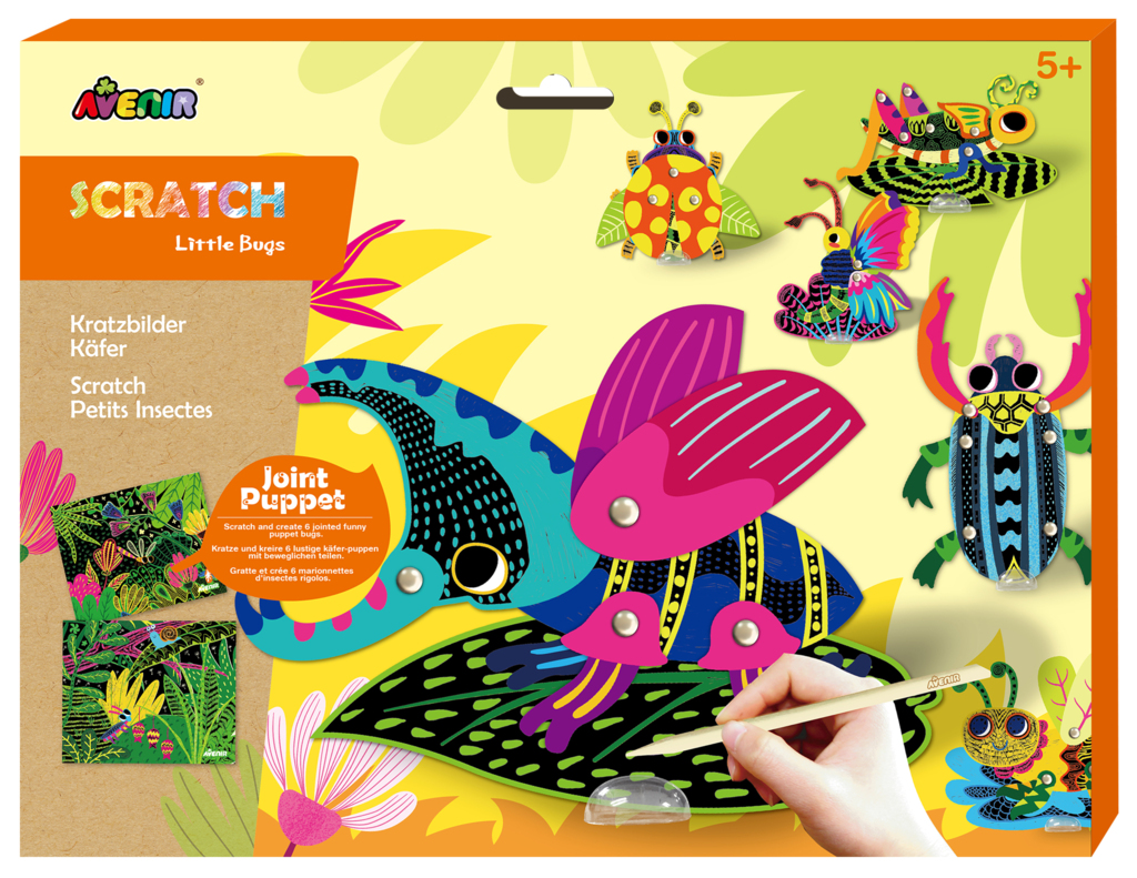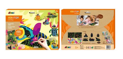 Wydrapywane owady to ciekawa propozycja dla kreatywnych dzieci. Prosta technika wydrapywania pozwala na stworzenie przepięknych oryginalnych figurek przy niewielkim nakładzie pracy. Zdrap i stwórz 6 uroczych owadów z ruchomymi elementami. W zestawie: 2 obrazki-wydrapywanki ze sceneriami, elementy do stworzenia 6 kukiełek, patyczek do wydrapywania