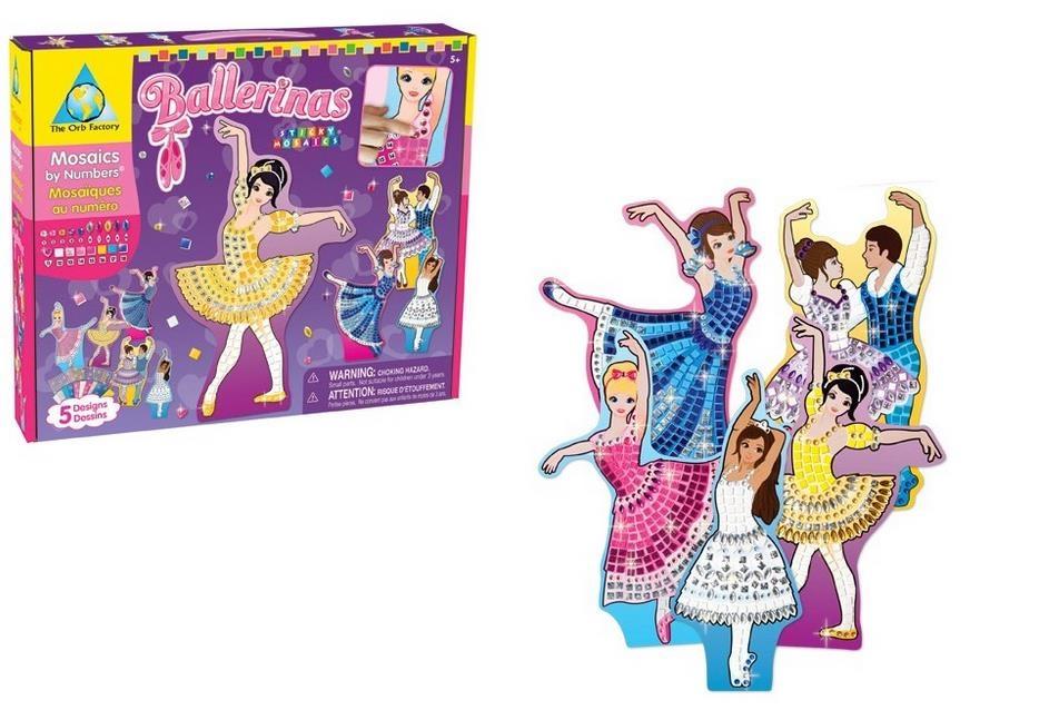 Zestaw kreatywny , w którym dziecko dekoruje wzory tańczących baletnic  naklejkami o różnych kolorach,strukturach i kształtach.