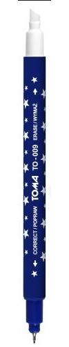 Do wymazywania niebieskiego atramentu piór wiecznych. Końcówka do wymazywania biała ścięta 0,8 do 3 mm. Końcówka do poprawiania niebieska metalowa z fibrowym sztyftem 0,5 mm. 50 sztuk w plastikowej tubie.