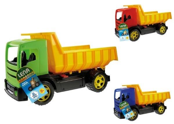 Wielka wywrotka od firmy Lena. Produkt został wykonany z dbałością o szczegóły i bezpieczeństwo dziecka, dlatego wykorzystane materiały są bardzo odporne na zniszczenia mechaniczne. Dzięki wykorzystaniu wytrzymałych materiałów wywrotka jest w stanie wytrzymać aż 100 kg obciążenia bez żadnych uszkodzeń. Taka wytrzymałość na obciążenie daje nowe możliwości w trakcie zabawy, dziecko może nawet jeździć na wywrotce.