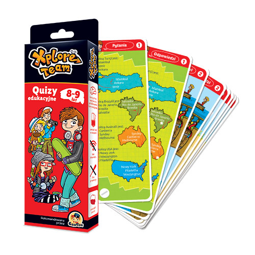 Quizy edukacyjne Xplore Team pomagają rozwijać zainteresowania dzieci w wieku szkolnym, wspierać ich rozwój oraz zaskakiwać ciekawostkami z różnych dziedzin. Książeczka zawiera ponad 120 różnorodnych zagadek, które pobudzają wyobraźnię i spostrzegawczość, poszerzają słownictwo dzieci oraz inspirują je do poznawania świata. Quizy edukacyjne zapewniają ciekawie spędzony czas, z dala od ekranu komputera. Mając poręczny format doskonale sprawdzają się w podróży. Książeczki w tej serii różnią się poziomem trudności -dostosowanym do możliwości dzieci szkolnych, w 3 grupach wiekowych: 6-7, 8-9, 9-10 lat.