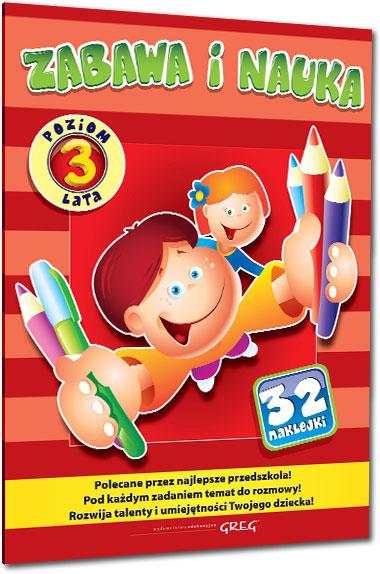 Zabawa i nauka 3 lata to książeczka edukacyjna, zawierająca wiele ciekawych zadań, zabaw, dzięki którym trzylatki mają możliwość rozwinąć swoje zainteresowania, talenty, umiejętności. Łączenie par, wyszukiwanie różnic, ciekawe labirynty, rysowanie po linii, szukanie podobieństw - to tylko niektóre z zadań, z jakimi spotka się dziecko w tej książeczce. Stopień trudności jest doskonale dopasowany do poziomu dzieci, a ciekawe ilustracje, sympatyczne postacie zachęcają do zabawy. Dodatkowo w książeczce znajdują się kolorowe naklejki wielokrotnego użytku, które są wielką atrakcją dla dzieci. Pod każdym zadankiem zamieszczono wskazówkę dla rodzica - interesujący temat do rozmowy z dzieckiem.