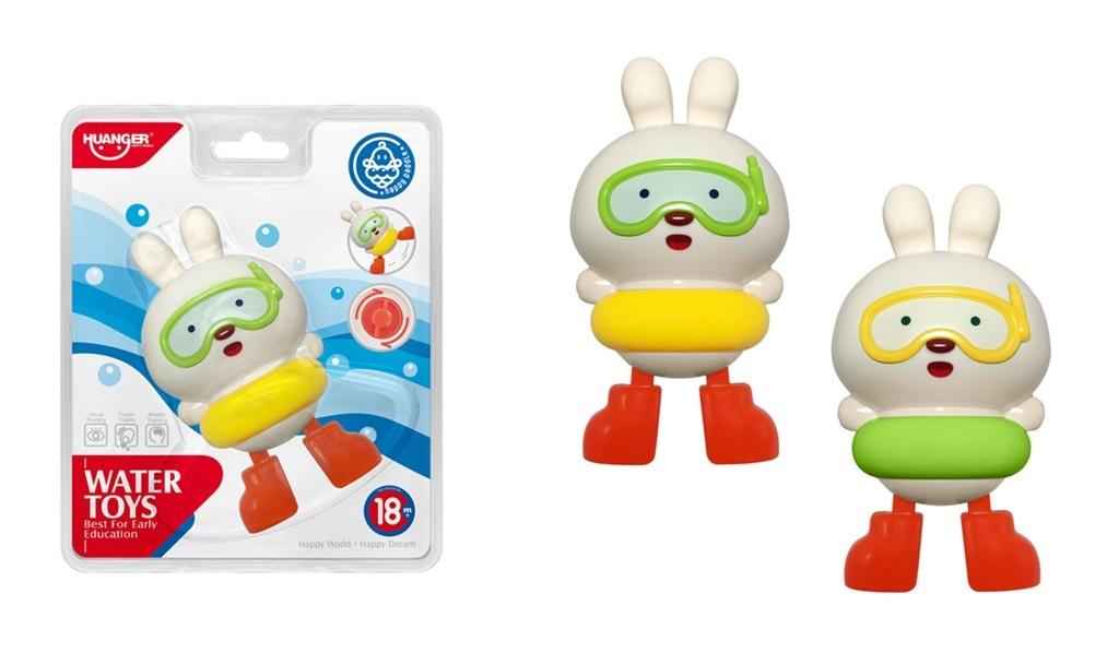 Zabawka do wody - królik dwa wzory, nakręcana wymiary zabawki 5.2 x 6.2 x 11.2 cm Wymiary opakowania 15 x 18 x 6 cm Wiek 18m +