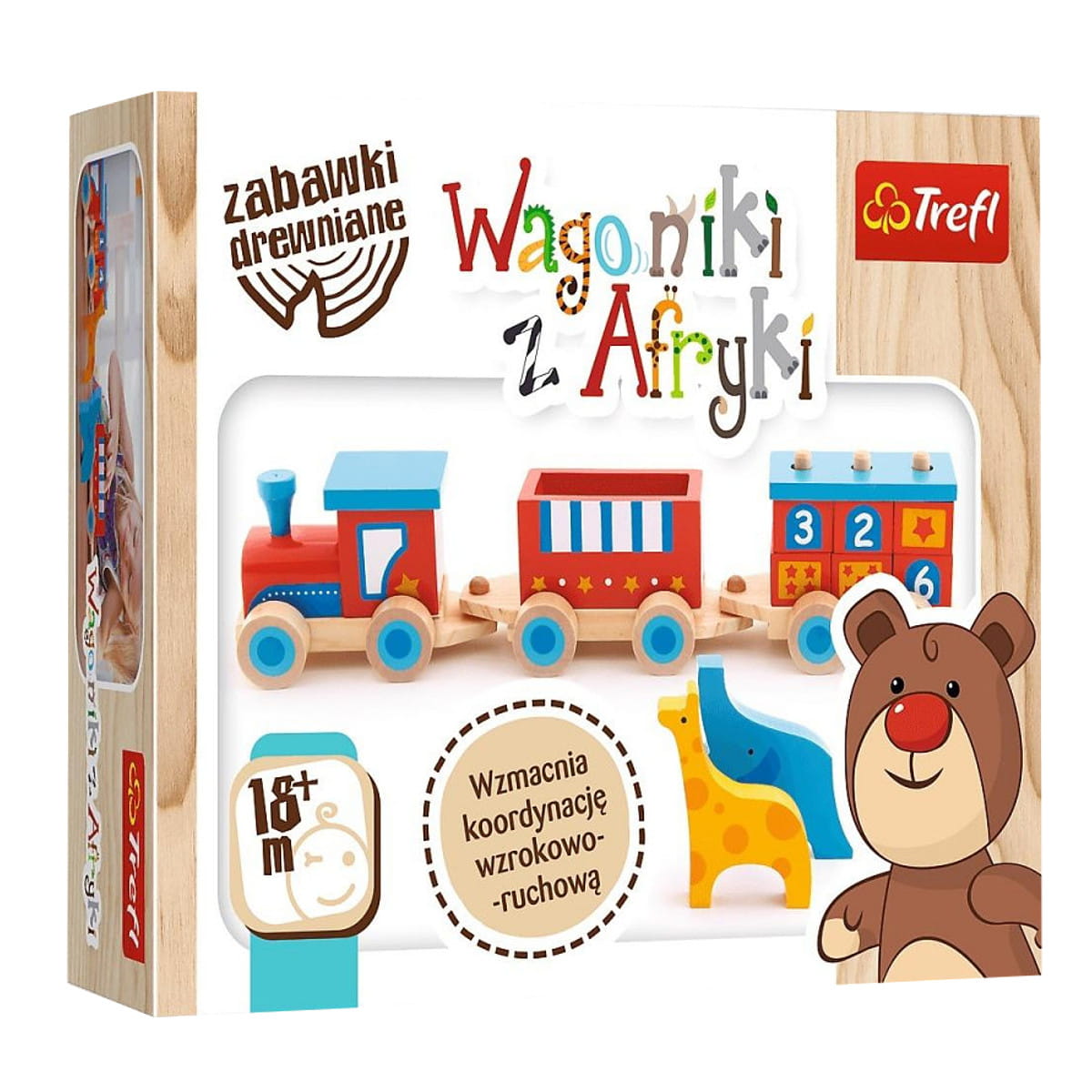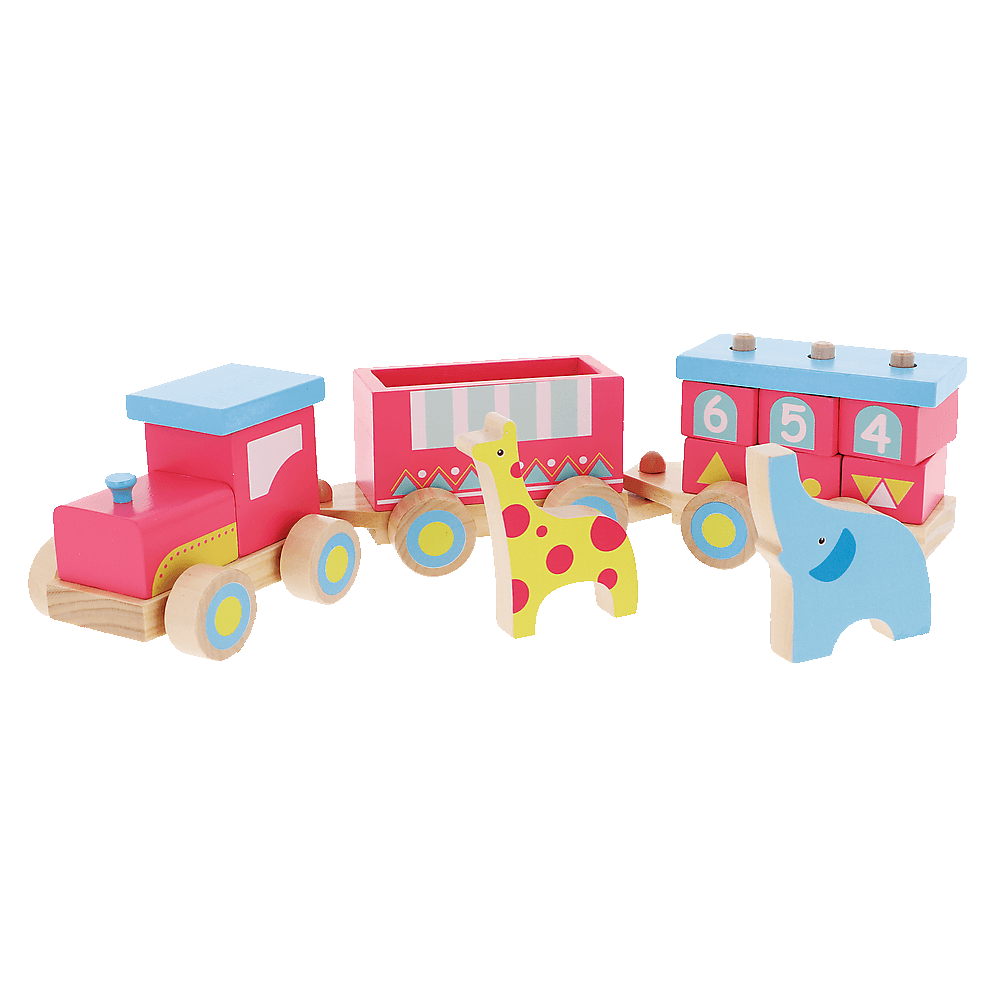 Wyjątkowy pociąg wykonany z jasnego, naturalnego drewna jest doskonałą zabawką ogólnorozwojową. Dzięki ruchomym kółkom zachęca do wspólnych spacerów, rozwijając dodatkowo odruch chwytania. Para zwierzaków do wkładania na wagoniki rozwija kreatywność, wspomaga naukę nazywania zwierząt i kolorów oraz ułatwia poznawanie kształtów. Wszystkie materiały wykorzystane do stworzenia zabawki posiadają atesty, a także zostały pomalowane nietoksycznymi farbami.