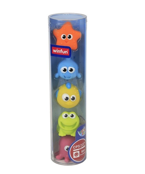 5 pyzatych zwierzątek umili każdą kąpiel. Kolorowe zwierzątka sprawią, że mycie się będzie ogromną frajdą, a nie przykrym obowiązkiem. Z wodnymi przyjaciółmi pociecha nie będzie czuła się osamotniona, a zabawy sprawią wiele radości i uśmiechu. Wodniaki nabierają wodę i po ściśnięciu zabawnie tryskają. Są idealnie dopasowane do małej rączki. Zabawki sprawdzą się także jako gryzaki przy wyrastających pierwszych ząbkach. Wiek: +6mc.