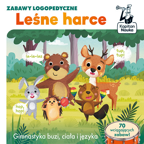 "Zabawy logopedyczne. Leśne harce" (3-7 lat) to zestaw 70 zabaw logopedycznych i ruchowych, które pomagają ćwiczyć język, buzię oraz całe ciało, a przy okazji dostarczają mnóstwo okazji do fantastycznej zabawy. Przedszkolaki będą robić to, co lubią najbardziej, czyli skakać, tańczyć, mlaskać, cmokać, stroić miny, sylabować, wymyślać wyrazy i wydawać śmieszne odgłosy.