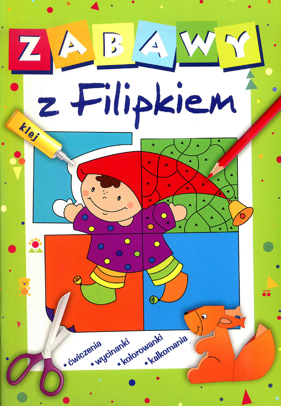 Zabawy z Filipkiem to atrakcyjna, wyjątkowa książka edukacyjna przeznaczona dla dzieci w wieku przedszkolnym. Wyróżnia się spośród innych pozycji tego typu bogactwem i różnorodnością zaprezentowanych zadań. Zebrane w niej propozycje dają możliwość wykorzystania wielu różnorodnych technik plastycznych - wykonania prac przestrzennych z tektury, kopiowania na kalce, korzystania z papieru kolorowego i samoprzylepnego. Zachęcają dziecko do wykorzystania takich narzędzi pracy jak klej, nożyczki, kredki.Książka ta wspiera rozwój różnorodnych zdolności manualnych. Jej dodatkowym atutem są wesołe rysunki oraz barwne naklejki, które zachęcą dziecko do zabawy. Jest doskonałą propozycją zarówno dla kreatywnych nauczycieli wychowania przedszkolnego, jak i dla rodziców dbających o prawidłowy rozwój swoich pociech.