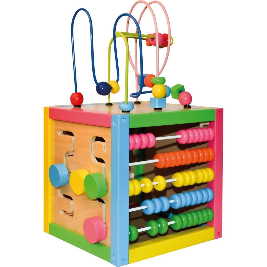 Jak umieścić razem wybrane klocki albo zmienić ich kolejność? Rozwiązanie zadania wymaga różnorodnych ruchów po torach. To dodatkowo ćwiczenie poprawiające sprawność dłoni. Kolorowe liczydło i przekręcane klocki z cyferkami pomogą maluchowi w nauce liczenia, a później także dodawania. Na jednej ze ścianek pudełka jest tablica. Wystarczy kawałek kredy, by dziecko mogło napisać do mamy dziecięcy list lub napisać, jak bardzo ją kocha.
